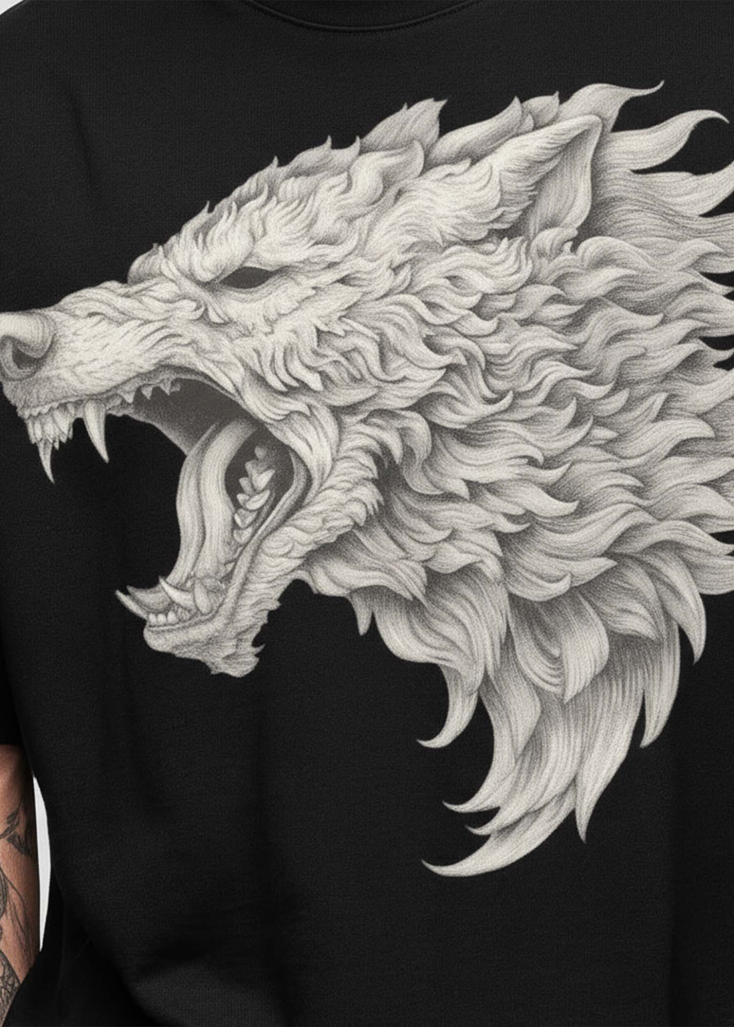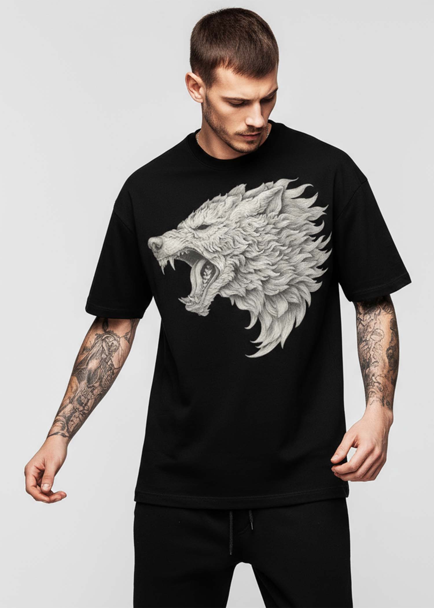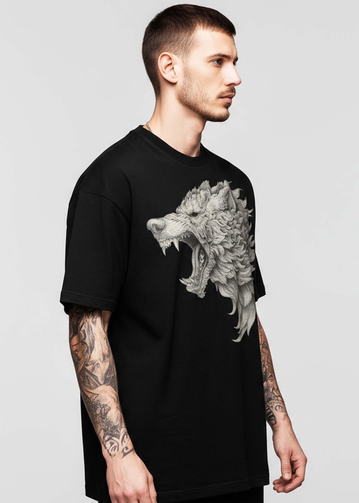 Unleash the spirit of the North. Crafted from 240 GSM 100% cotton, this bio-washed oversized tee embodies the untamed essence of Fenrir — the mythical wolf who broke his chains. Soft, durable, and primal in its presence, this piece blends ancient legend with modern streetwear elegance.
