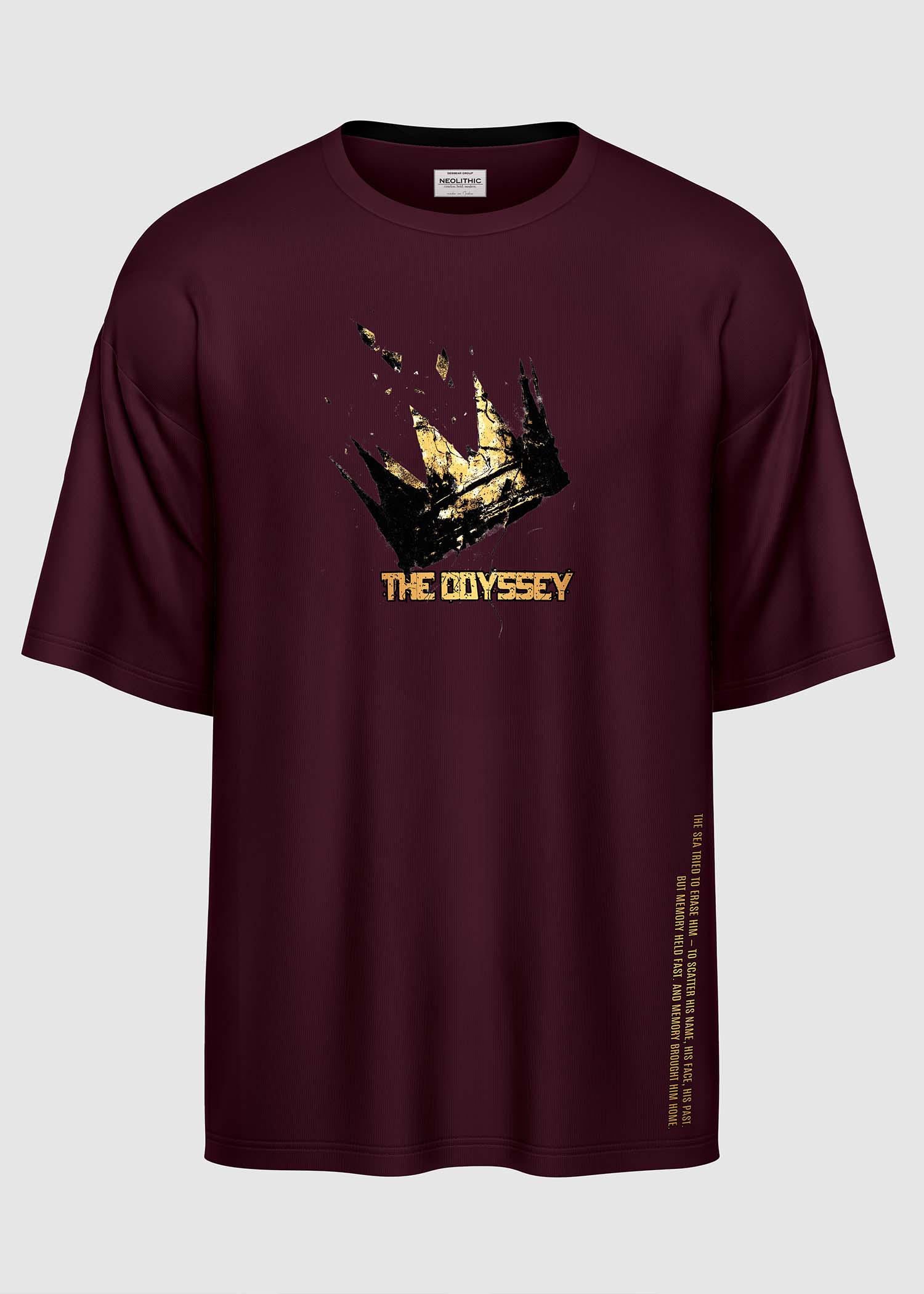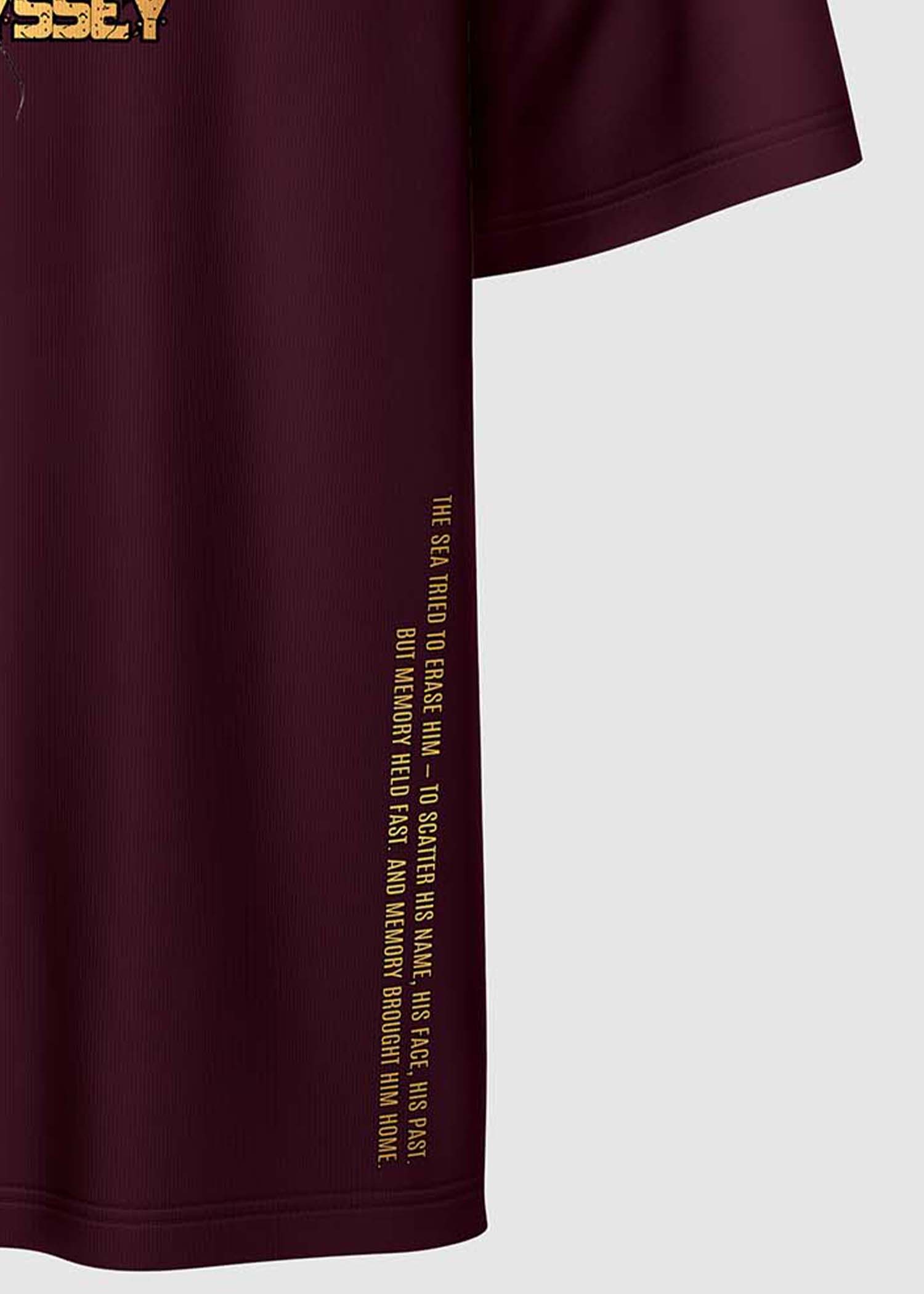 This oversized tee draws from The Odyssey—where identity is tested, erased, and finally reclaimed. Crafted in premium bio-washed cotton, finished with restrained storytelling and a worn crown that speaks of survival, not spectacle.